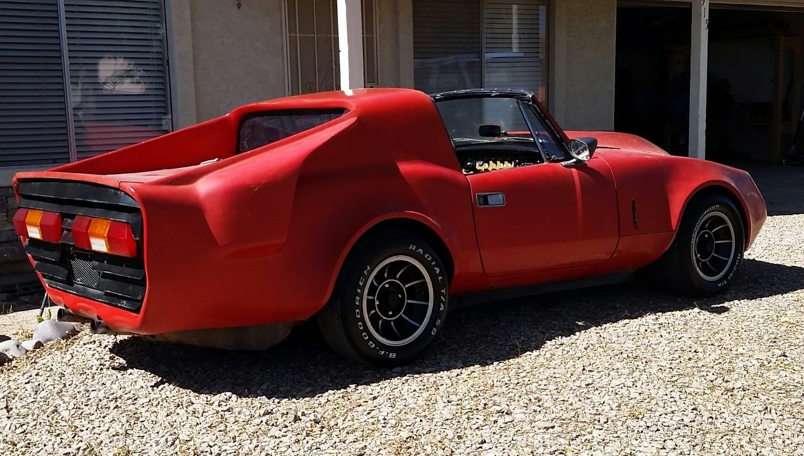 Were you hoping it might look better from this end? Those Mustang II tail lights don’t help the appearance. With the V8 neatly stuffed in the nose, why did the builder need such a huge tail? A Chevy truck radiator is mounted at the very rear. Ahead of the radiator is just a small trunk. There was some clever engineering and a lot of work that went into this car. Imagine what it must be like with that V8 in the nose on Spitfire suspension, top heavy with layers of chicken wire and fiberglass. I’m guessing this is scary to drive and the builder was disappointed in the results. What do you think the new owner will do with this? Perhaps it will appear on eBay again in a couple of decades.