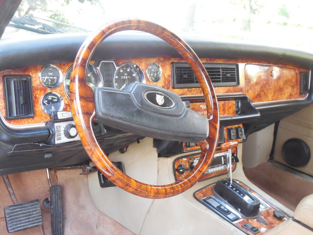 The best part is the interior is still pure Jaguar. I sometimes find these conversions are good in one way and not another. In other words, the engine will be a very basic 350 with a beautiful interior, or it will be hot-rodded under the hood with a cockpit that’s been destroyed by the sun and moisture. Fortunately, this XJ6 is as good inside as it is on the outside with a classic interior featuring beautiful woodgrain trim everywhere you look (brand new, according to the listing), luxurious wool carpeting from the UK, and leather seats with no major flaws. The dash pad is new so no cracks up there, and the instruments have been rebuilt and rewired with new sending units with LED backlighting. Oh, and the air conditioning works!