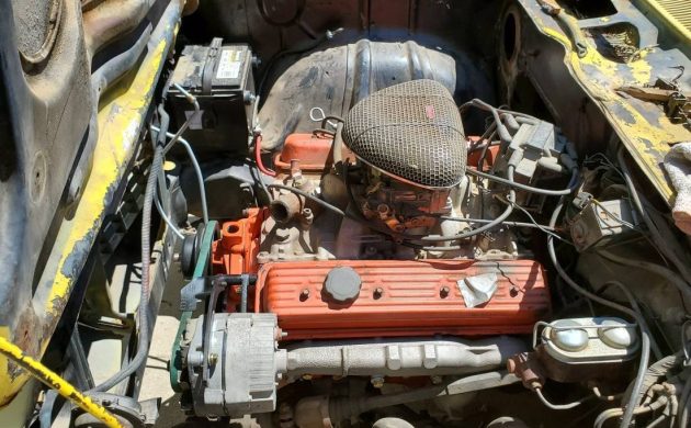 This example is stock right down to the 4-cylinder motor and 4-speed tranny. It runs and drives, but has some corrosion that the buyer will need to address. Parts for this unit include an Offenhauser intake manifold and a whole spare engine, which has been rebuilt with headers. Perhaps restoring both of these Chevies is the way to go after all.