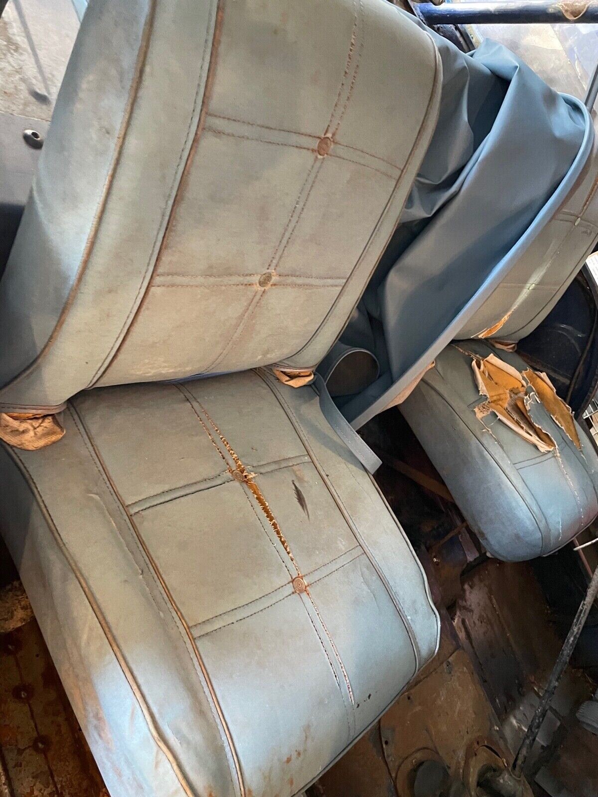 This looks like the Levi’s-style interior with the buttons in the upholstery, but the seller doesn’t confirm nor deny if this is the case. The Jeep is certainly rough around the edges, with the upholstery torn up and the seat foam starting to spill out. The front floors were supposedly the only area of major concern rust-wise, and the seller had those sections repaired. The Jeep is said to run through the gears without issue, and the transfer case works well also. The power steering is also functional.