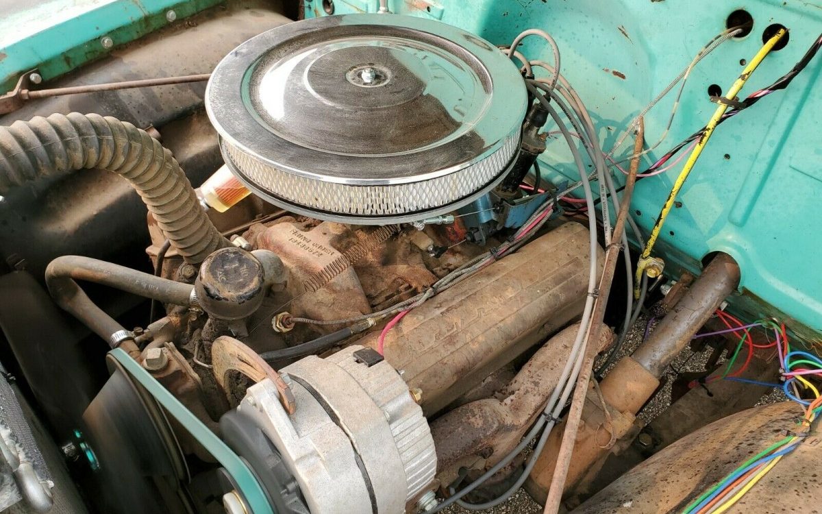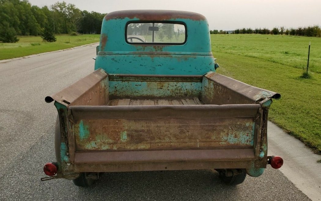 OK, I know many of our Barn Finds readers are not fans of the patina look, I get it, but that’s how the seller refers to his truck, it has “perfect patina”. Working around the semantics, the body of this Chevy is in pretty solid shape, no dents, rust-through or observable crash damage. The rust, that is present, looks to be strictly surface in nature as it bleeds through its typical ’50s aqua hue though the seller does state, “nearly no rust”. The underside appears to be very sound though the wooden cargo bed has seen better days.