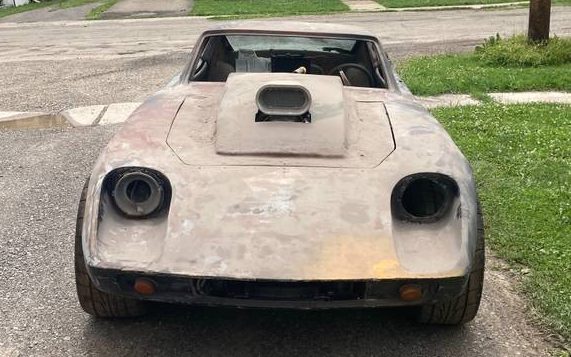 The design of the body is sharply creased and aggressive but it’s difficult to get a thorough look at it considering its unfinished, and what appears to be patched condition. There do not appear to be any splits, cracks, or significant damage of any kind but a closer view would be needed. There is no reference to things like missing headlights, taillights, bumpers, trim, glass, etc. I must say that the alloy wheels are impressive looking!