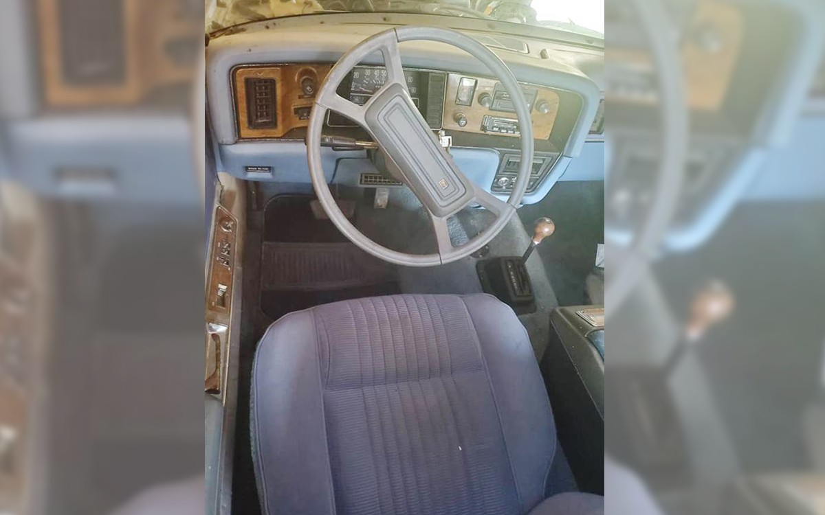 So, no leather seats but this one does have the top engine in keeping with its almost-loaded status: an AMC 304 cubic-inch V8 which would have had a mere 125 horsepower and 220 ft-lb of torque. They say that it came “with new water pump, maybe why it was parked for years, also rear brake reservoir was empty” but the engine runs, sort of, other than dying right away. And the power steering isn’t working. Yes, this is a project but hopefully it can be saved. Can it be saved?
