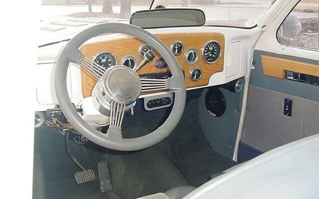 Both Graham-Paige and Hupp’s versions of the Cord took its two most known features — front-wheel drive and the nose design — and replaced them. Each manufacturer supplied their own inline six-cylinder engines for their newly rear-wheel-drive cars, but the redesigned noses were almost identical to each other, and both lacking the coffin shape and hidden headlights. This Graham takes that powertrain one step further and replaces the Graham straight six with a Chevrolet V8 crate motor and TH400 automatic transmission. The seller doesn’t say which crate motor is in it, but judging by the size of the thing and the chunky manifolds, I’m gonna go out on a limb and say it’s a big block of some type.