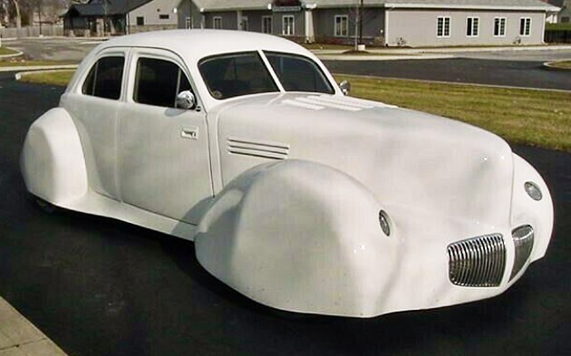 I’ve seen this car in person twice at the Ducktail Run in Gas City, IN. It was never open….nice to see the interior and under the hood. Unfortunately it seems like a lot of effort/$ for an average/odd result. Maybe this was the prototype for Justin Bieber’s floating Rolls Royce?