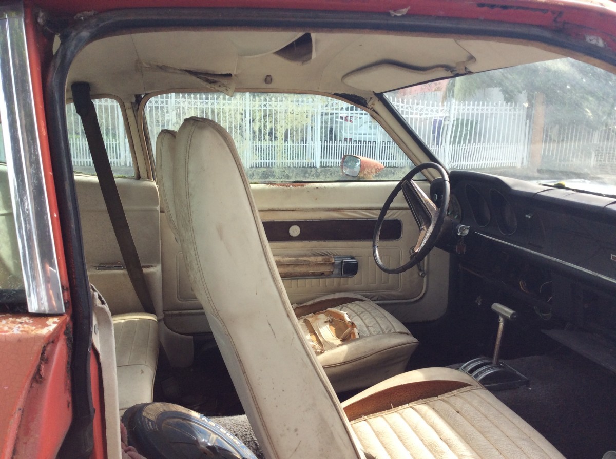 The body looks straight overall, and no major rust jumps out, but we wish the photos would drill in closer so we could better determine. While the car has surface rust here and there, the hood has it 100% so we’re guessing the hood is not original to the car since there is no apparent simulated hood scoop. The interior is going to need an extreme makeover, from seat covers and headliner to the dash pad. The true mileage of the car is not given, and its title is missing, so we assume the car will be sold with a bill of sale and the buyer will have to work it out with the tag agency.