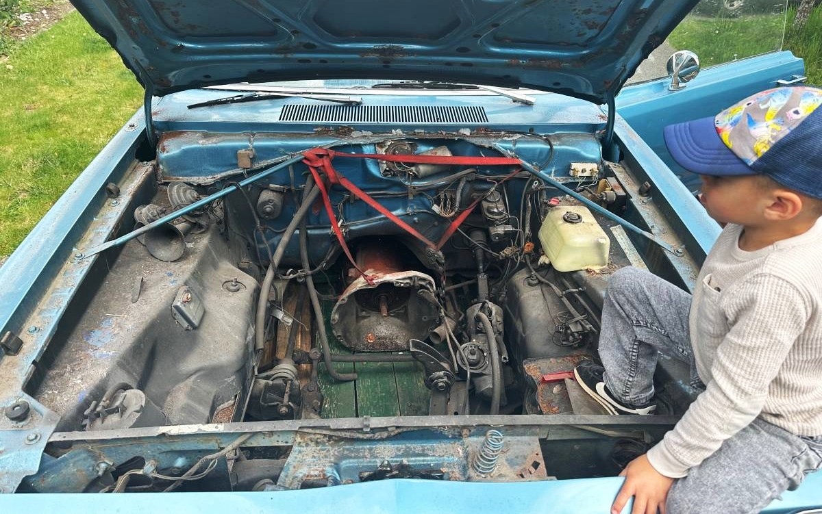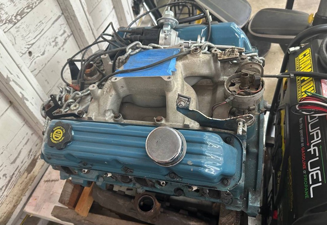 From what we can tell, the body, paint, vinyl roof, and interior are all good. So, if you bolt in an engine of your choice, you might have a driver after a couple of weekends of work. The seller apparently planned to do that, but “life” has gotten in the way. The mounts for the V8 upgrade will go with the car which the seller may be able to deliver.