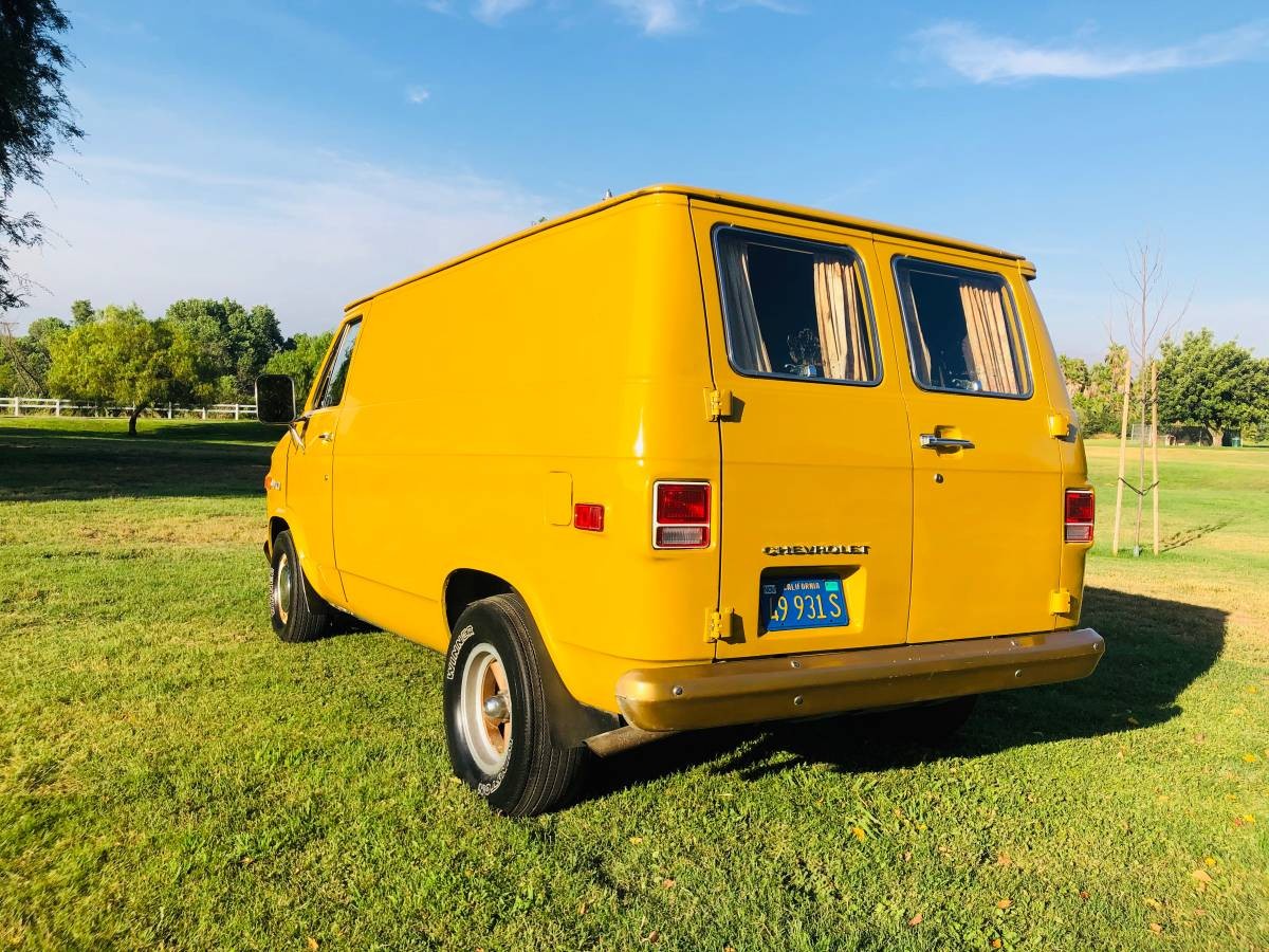 Thanks to Barn Finds reader Pat L. for the find. There’s a lot to like here, but my favorite feature is the wheelbase. These “shorty” vans just look so sweet for cruising in, as they almost seem sporting in comparison to their long wheelbase brethren. The G10 sports old-school California blue plates and an interesting wheel setup, with an obviously staggered setup and dog-dish style hubcaps up front with what look like color-matched Torque Thrust rollers out back. The rear window has drapes for privacy, and there’s no portholes in this example.