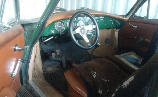 I would definitely go check this one out if I lived in that area. 4 Pictures is just enough to make you wonder what’s if anything is missing .Love the green color it makes it look more euro. The steering looks good but hopefully the owner still has the original . 69k is a good price for this 356 . A little work and you could make at least 20k on this car. I would fix the problems and drive it and turn heads.