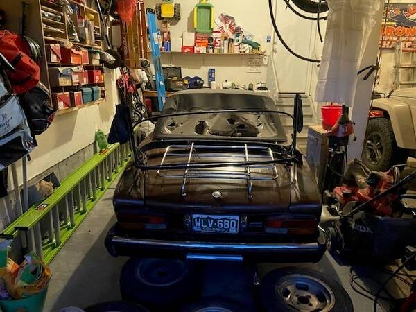 Two pressing jobs: A new top (the current one is in shreds) and some appropriate wheels to replace the oversize mags that are on it now. But seven extra wheels come with the car!