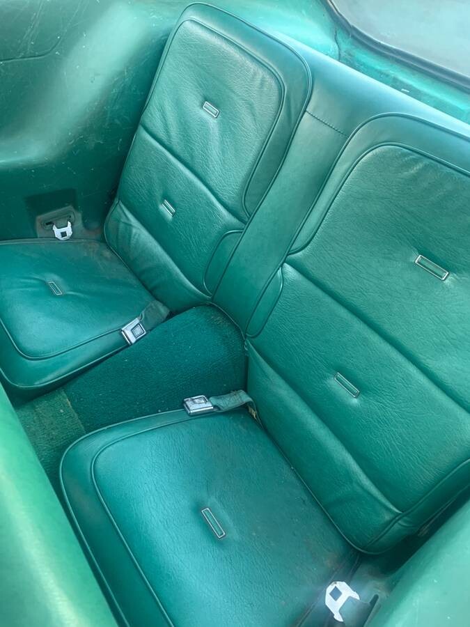 I hope the next owner likes Medium Jade Green, because it’s carried over into the well-preserved interior where practically everything, even the headliner, is green. According to the Pinto sales brochure, the front bucket seats and the “bucket-inspired” rear seat are finished in the optional Ruffino Vinyl and the rear seat can be folded down to provide 29 cubic feet of carrying space. There’s a little bit of wear visible on the driver’s seat’s piping and the seat bottom is smooth instead of having the indented rectangular button or whatever that is in the middle. The door panels and instrument panel look very good, but the original green carpet appears faded to a light aqua in spots, but overall, this is an impressive looking interior. Again, for a 45-year-old Pinto.