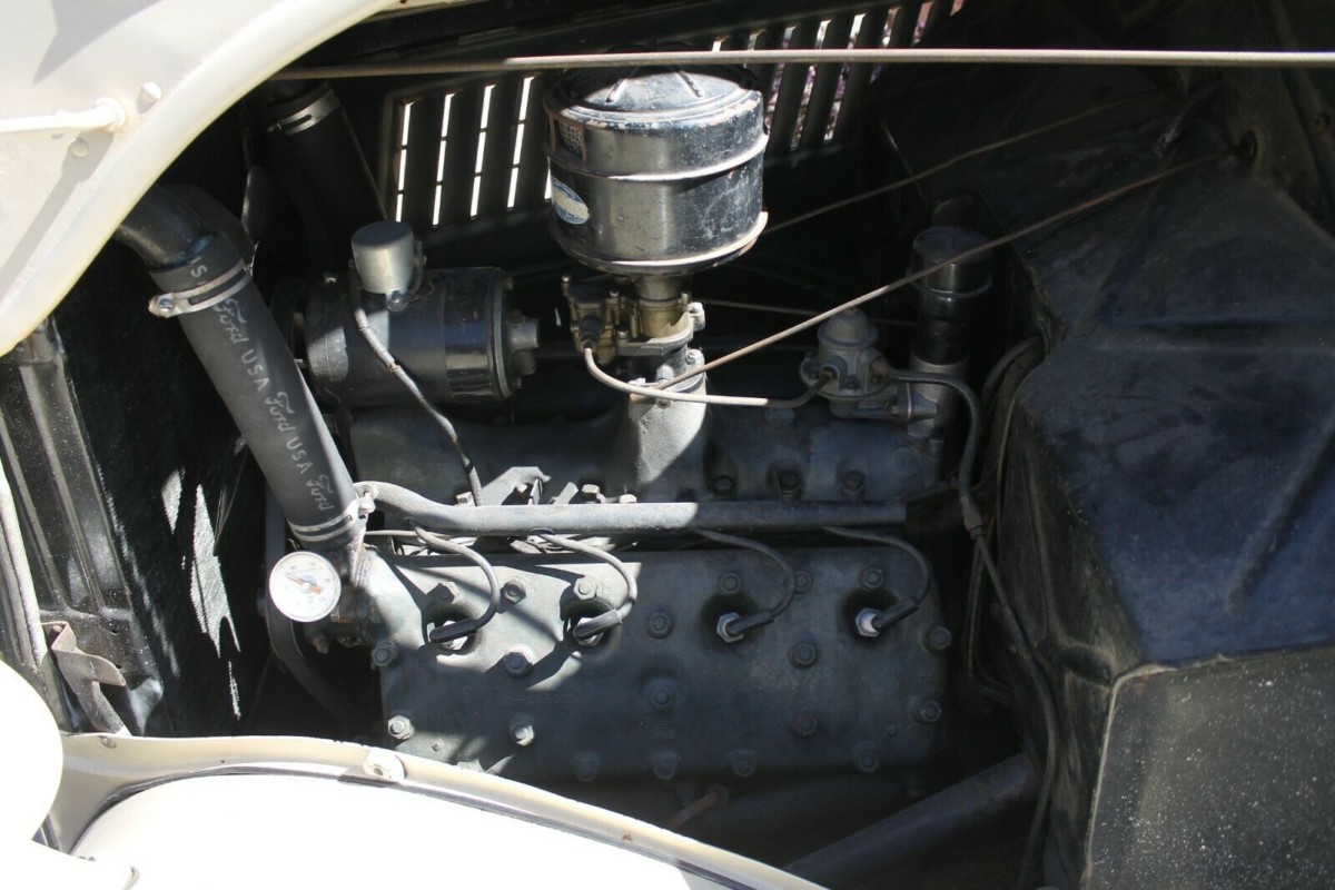 The owner of the Coupe emphasizes its rust-free status as a Californian car. He backs these claims with a decent collection of photos, and they all look very promising. The panels look to be very straight, and as well as the floors and frame appearing to be solid, the Ford appears to be free of external rust problems. The white paint that the car currently wears isn’t original, with the car having received a repaint from what appears to be black at some point in the past. This repaint doesn’t look like it was completed to a particularly high standard, because there is plenty of evidence of bad masking when you give the vehicle a careful check. Having said that, it does remain presentable, so the Ford could be used as it currently stands. The external trim and chrome is all present and is generally in reasonable condition. There are a few pieces that are showing some bubbling under the chrome plating, but none of these pieces are beyond restoration. One thing that will require replacement is the windshield. This has been badly damaged while the car was in storage, and driving the car with it in its current state is not bound to be a particularly pleasant experience.