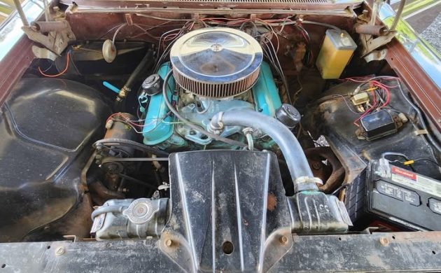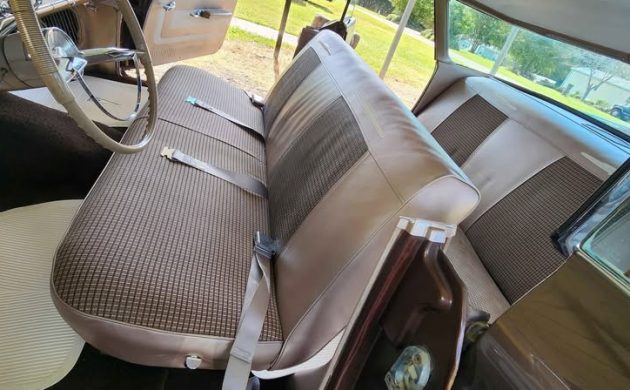 Excuse me for being nostalgic, but I grew up riding in a 1960 Pontiac Catalina Vista four-door. My dad bought one at the end of the ’60 model year from Roundtree Pontiac in Petersburg, Virginia. It was Sierra Copper with a Shelltone Ivory top, and this one appears to be finished in an attractive dark brown metallic paint called Mahogany Poly. The seller says it’s the original factory paint. If so, this Catalina has spent a lot of time in a garage as the paint is shiny and very presentable and looks great to be 65 years old. All of the chrome, trim, badging and what Pontiac called the Vista’s “full-circle glass area for unlimited visibility” looks to be in tip-top shape. The only things keeping it from looking stock are the current wheels (which appear to be Chrysler in nature) and period-correct whitewall tires.