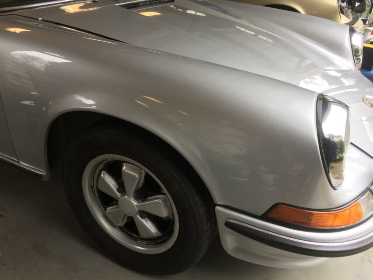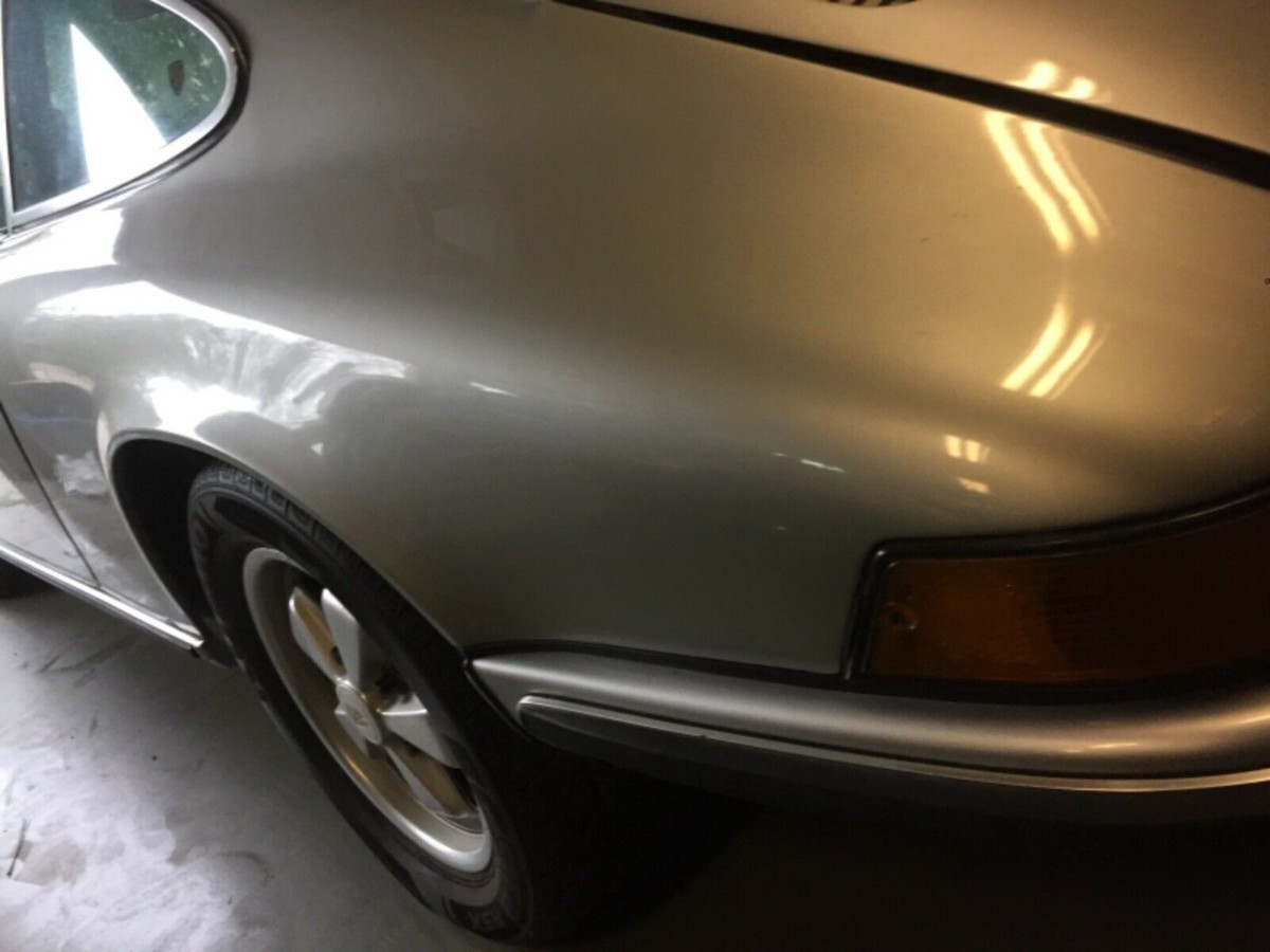 The seller describes this as an “honest” car and feels it is the best 911S they have come across in 25 years of in buying vintage Porsches. The car has a COA stating that the silver paint, red leather, power sunroof & windows, 5 speed transmission and also the very coveted Appearance Group are all correct to the car (although some of the silver has been repainted). In case you are wondering, the Appearance Group includes fog lights, intermittent wipers, rear defroster and chrome wheel well trim (the trim is currently off the car but is in excellent shape and is pictured in the auction listing).