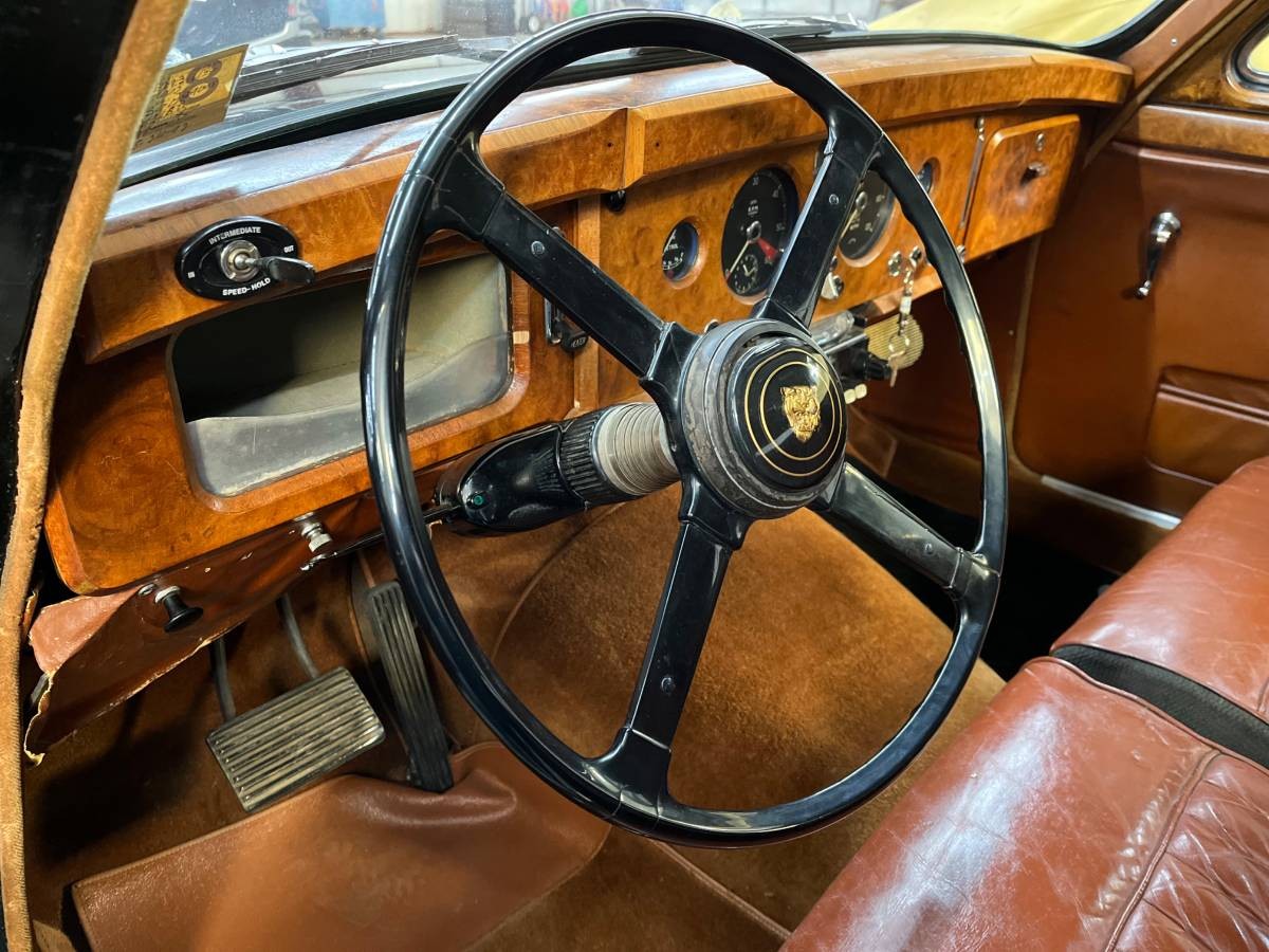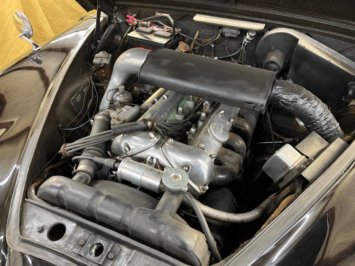 This is a U.S.-spec left-hand-drive example, with a leather and wood interior that’s worn like fine wine. This is one area where Mark Is are fully the equal of Mark IIs. The headliner looks fine, and the carpet is new. The car also has new brake cylinders for the drum brakes. Front discs were only offered at the end of 1957. The electric fuel pump was also rebuilt. The heater works, but the wiper motor needs rebuilding or replacement.