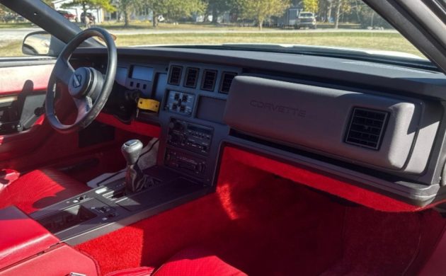Another detail about the production numbers that bears mentioning here: this is actually the 71st C4 to roll off the assembly line but it holds the cherished VIN number confirming it is the first production C4. The initial batch of 70 cars were considered test vehicles by Chevrolet, so once the 71st car was produced, it was officially cleared as the first one to be offered to the public for sale. Given the Corvette’s notoriety, it was donated to a national Corvette club, and eventually raffled off. After buying it from the winners of the raffle, the long-time owner proceeded to keep it in preserved condition. While it was discovered covered in dust, it’s clear that the condition underneath is excellent.