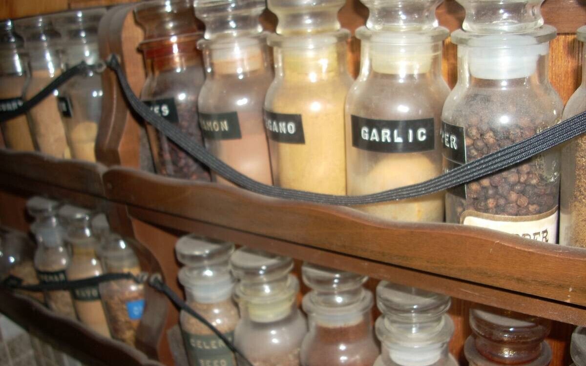 Check out this spice rack. Not sure cooking with these would be recommended, but if you’re interested in a time capsule look, here it is, right down to the vintage embossed-style vinyl labels.