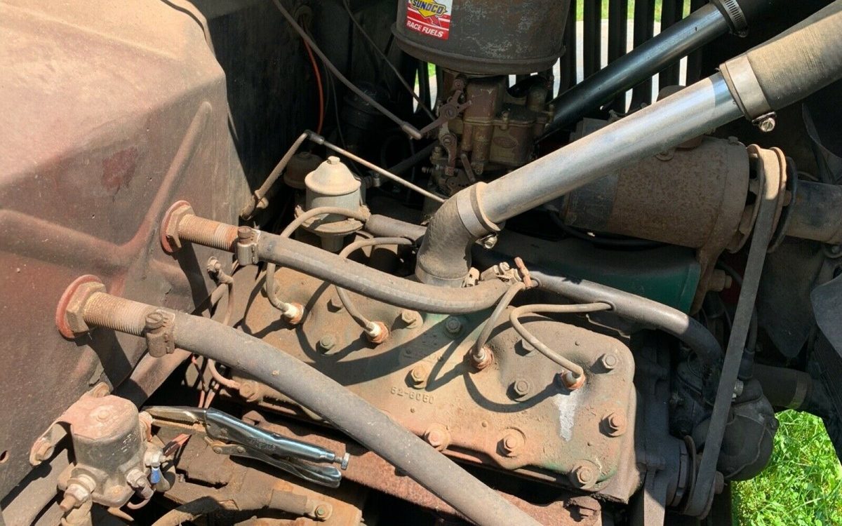 You can see the flathead looks mostly original and untouched. The ad says the truck runs and drives but needs a little TLC. I’m not sure exactly what that means, but I would probably start with the set of locking pliers clamped to the starter solenoid.