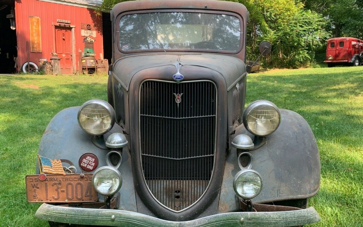 It is always nice to see a time capsule like this 1935 Ford pickup. It has a couple of vintage custom touches but looks like it just drove out of 1950. Mid 30s trucks like this one have amazing lines. The fenders have a very graceful arch, the grille and headlight combination is very attractive, and the roof has a great shape. This one can be found for sale here on eBay with a requested opening bid of $18,900 there has been one bid. The truck is located in Mukwonago, Wisconsin, and wears vintage Wisconsin license plates. Take a closer look at this awesome old truck.