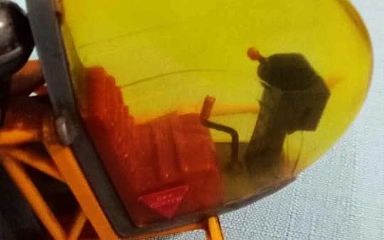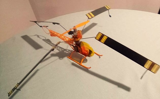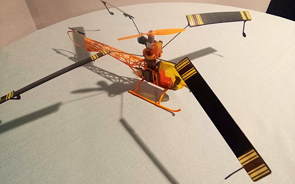 The seller says this has been stored since the seventies, but it’s reported to have been a working flyer at one time, as evidenced by a small scratch on the plastic cockpit window and a blunder on one of the blade stickers. Otherwise, this chopper seems to be in fine condition overall and doesn’t appear to have seen excessive airtime. Adding a considerable amount to the cool factor here is the engine: a nitro-fuel-powered Cox .020 unit, activated with a glow plug. Once started, you just perform a gentle rotor twirl, and up she goes.