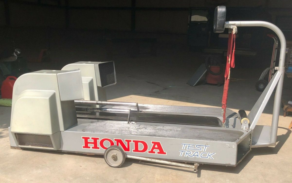 I bet most of you reading this have never seen a Honda Test Track before. Apparently, this was a primitive dyno machine for motorcycles from the 1970s. It can be found here on eBay with an asking price of $2,750. Located in Leverett, Massachusetts, it looks like the perfect addition to a motorcycle collection. Can you imagine this in the corner of a rec. room or showroom with a vintage bike strapped to it? If you are familiar with this equipment or have any other details, please drop us a comment below. Let’s take a closer look at this performance relic.