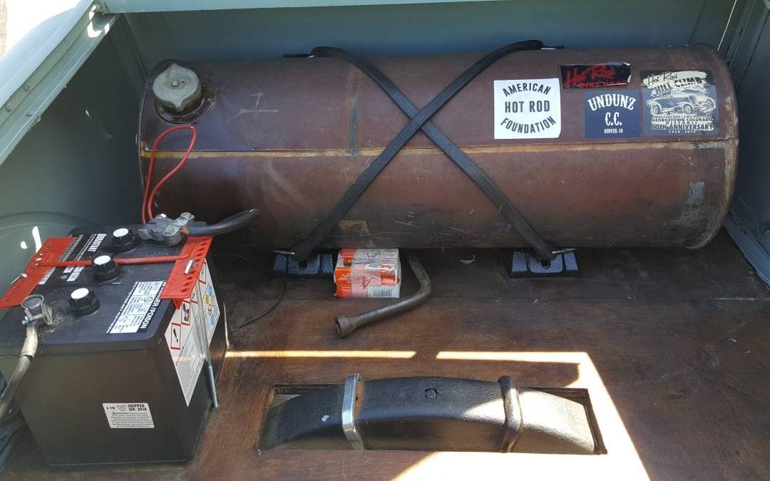 It’s hard to believe someone would thing using two glorified bungee cords to hold a gas tank, mounted in an enclosed trunk is a good idea. Even the most lax tech inspector would laugh at them as he handed them back their tech card with FAIL written in bold letters across the front.