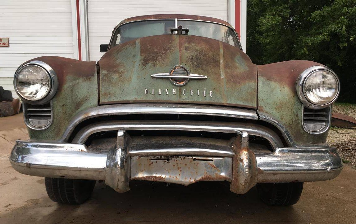 In the early 1960,s some truck broadsided my red 1952 Chevy convertible, ( totaled ) So I needed a car real bad for work. I bought a green 1952 Olds 4 door almost like this one for $50.00 at a salvage yard. I realized soon the rear crank seal was completely wasted so I went to a garage in the back and cranked drain oil in it Dailey. When it did run, ( occasionally ) it always VAPOR LOCKED at the carburetor fuel line above the intake manifold. So we tried keeping the line cooler by attaching wooden clothespins or shield with aluminum foil to no avail. I still remember being pushed to start it and it refused to start. I got so made 1t 17 y o I punched my fist through the side window and junked the dam thing. LOL