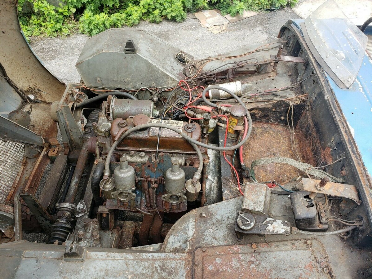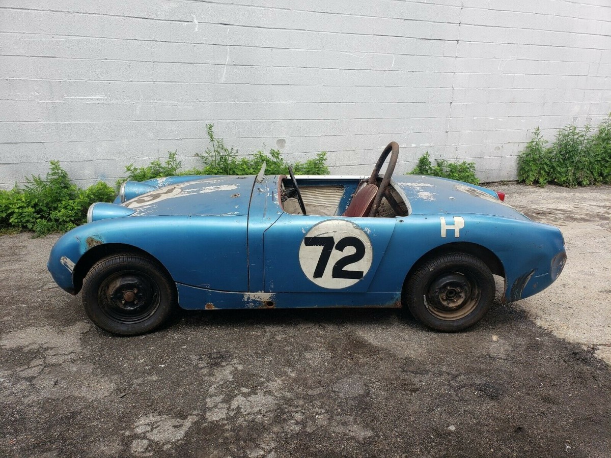 The exterior of this Austin-Healey is quite solid with only minor rust to be found, and one “rub” from racing on the driver rear fender. Chipping in a few areas, the paint is mostly there and offers a neat vintage race appearance. New tires have been installed, and it is easy to see that one of the wheels was submerged in dirt. The bonnet is in fair shape other than the hood pins, and the exterior overall seems reasonable. Bugeye Sprites are well loved British classics, so getting sheet metal isn’t out of the question. Would you make this Sprite a road goer, or a road racer once again?