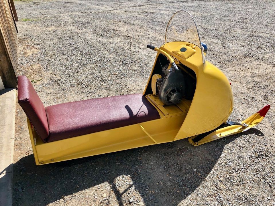 Howard A makes more sense here than anyone else. This model Ski Too was absolutely the precursor to the modern sleds of the early 70s. Personally, I am an Arctic Cat fan because a good friends dad in high school 69 to 74 was a Cat dealer. I bought a new 72 Cat with a 340 cc Kawasaki engine. Unlike today, all sled makers, about 100 of them in 1970, used engines made by outside vendors. Rotax is made in Austria. For those that don’t know, certain Ski Doo, Arctic Cat and Polaris models sell for up to $40,000 today if perfect originals or restored. Personally, I sold my 1972 Arctic EXT racer with a 440 cc Kawasaki triple for more than $9,000 six years ago. It was an animal but not trail friendly with its free air engine design. New sleds, like stupid new cars and SUVs, all look the same and cost $15,000 and up and are so complicated they break down all the time. Junk.