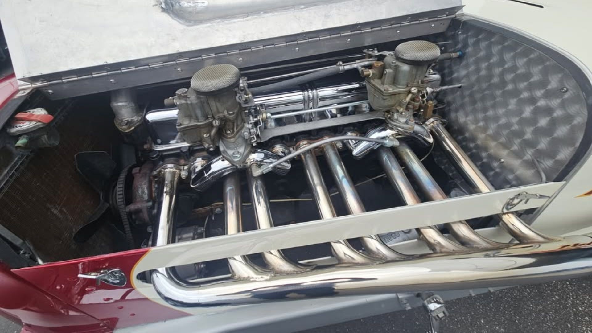 At first glance, this car could pass for a genuine ’30s champ car—thanks to its fully hand-formed aluminum body, period-correct components, and meticulous attention to detail. The only notable deviation is the engine: a 1951–52 Buick straight-eight. Chosen for reliability, it mimics the look of earlier mills but benefits from improved internal components. It remains stock internally, save for a custom-built dual-carb intake and a hand-fabricated header that perfectly suits the period style.