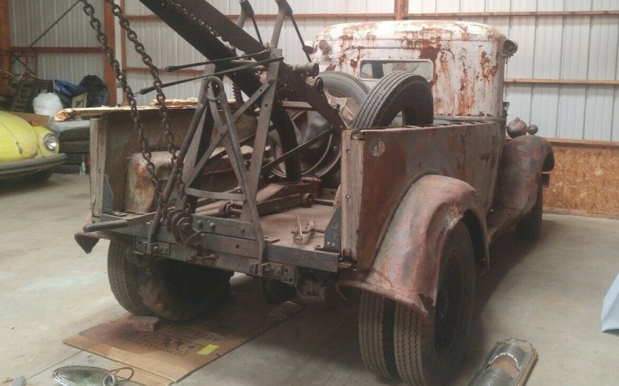 Here’s a neat one. I read, this is a Model 51, 1.5 ton, and while the winch appears to be hand cranked, there is a hydraulic pump and control for something, possibly a plow on front. The hoist is missing the rubber bumper lift part, and you won’t be lifting any Hyundais, or any other car with a plastic bumper, these were mean’t to lift Cadillacs, and such, with massive front steel bumpers. It’s a great find, and an important piece of history. Back then, travel was a lonely deal with break downs a regular occurrence and seeing this coming to help saved the day, lives even. I’d simply vomit if it gets turned into anything else. I’d rather it was displayed out front a towing company than to resto-mod it. The 30’s had such neat designs.