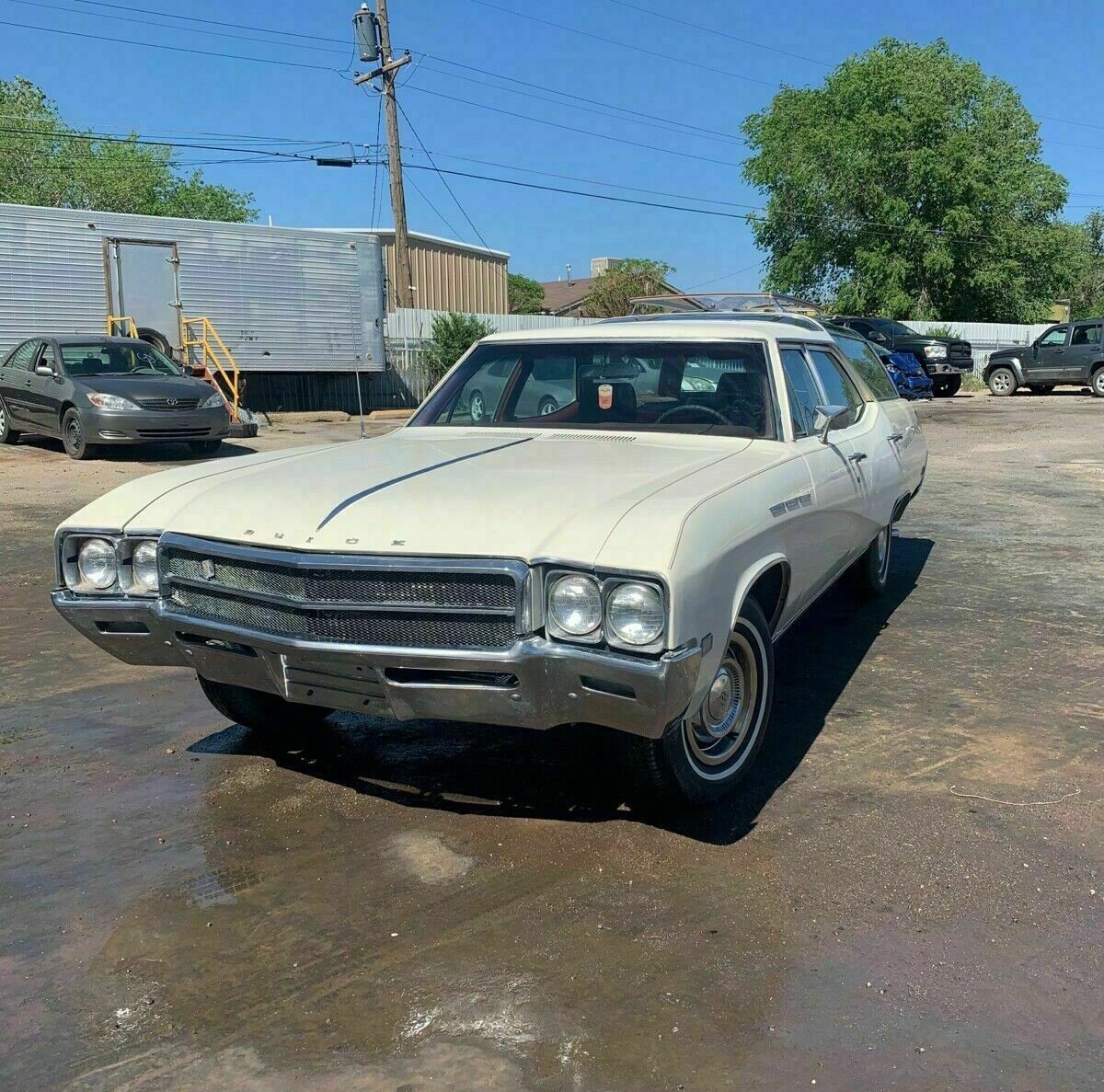 Looking at the driver’s side, the rear door and quarter panel looks to be holding about 20 lbs. of Bondo. This also has the wrong roof rack. Throw in the mess of the interior and it seems this is a Frankenstein car. Glad it is still around, but it looks pretty “abby normal” in current configuration. Olds did a much better appearing wagon for sure.YMMV.