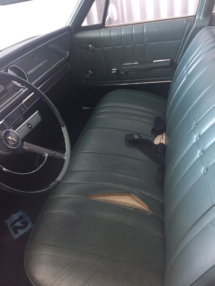 As we said, the seller is short on words regarding his wares, preferring interested parties to message him instead. What we do know is that the body looks really good from the limited angles the photos give us. We gather it doesn’t run or why not pull the car out and take pics from all around instead of from inside a single-stall garage? The seller says the exterior color is beige, but it looks more like white over Artesian Turquoise from checking out the Chevy color charts for that year.