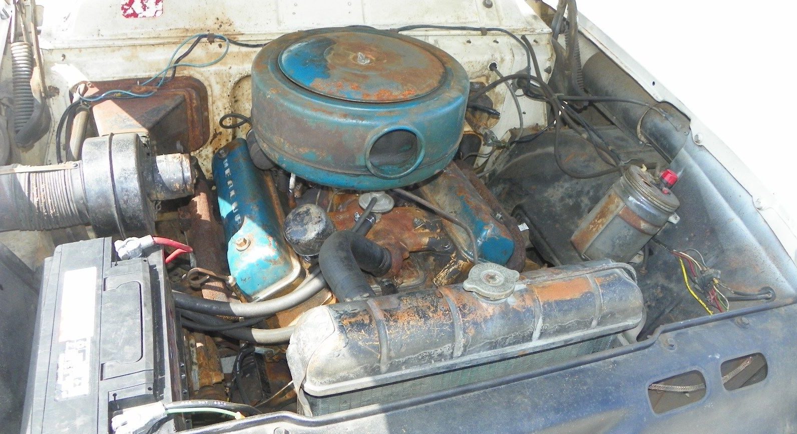 This old Mercury could use a lot of cleaning under the hood, but it looks like it is all there. This is likely a Ford Y-block 312 CID engine with about 200 horsepower.