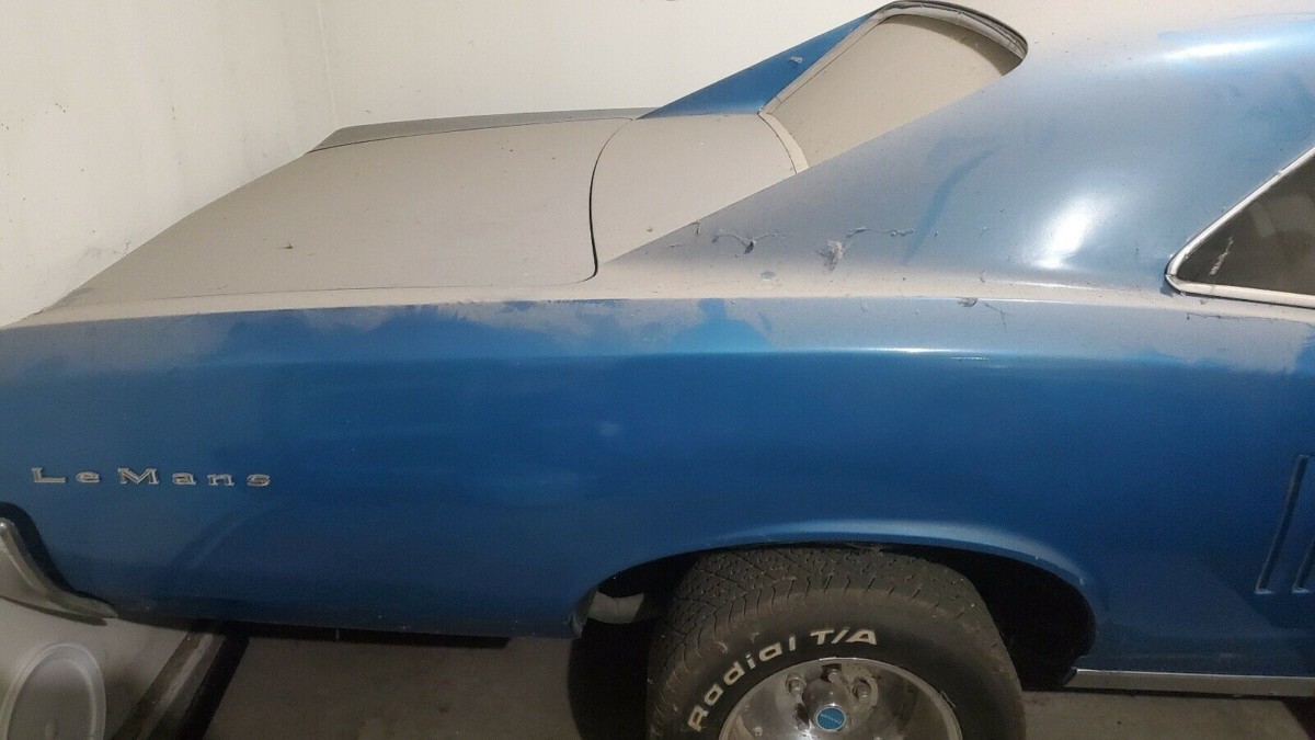 It isn’t clear when the Le Mans underwent its refurbishment, but it looks like it was the body and drivetrain that came in for the majority of the attention at that time. The car carries a healthy coating of dust, but below that is Blue paint that I would refer to as a reasonable 10-footer. From a distance, it doesn’t look bad, but closer inspection reveals a fair collection of cracks and imperfections. These are particularly evident on the rear pillar on the passenger side. I can’t pass judgment on the driver’s side for the simple reason that the owner supplies no photos of it. It looks like there might be some minor rust appearing in the bottom of the door, but otherwise, the car does look relatively clean. It looks like the trim, chrome, and the glass are all in good condition, and while the wheels most definitely aren’t original, they look like they would polish up quite well. Those wheels should also be some sort of pointer to the fact that there are a couple of other deviations from standard with this car.