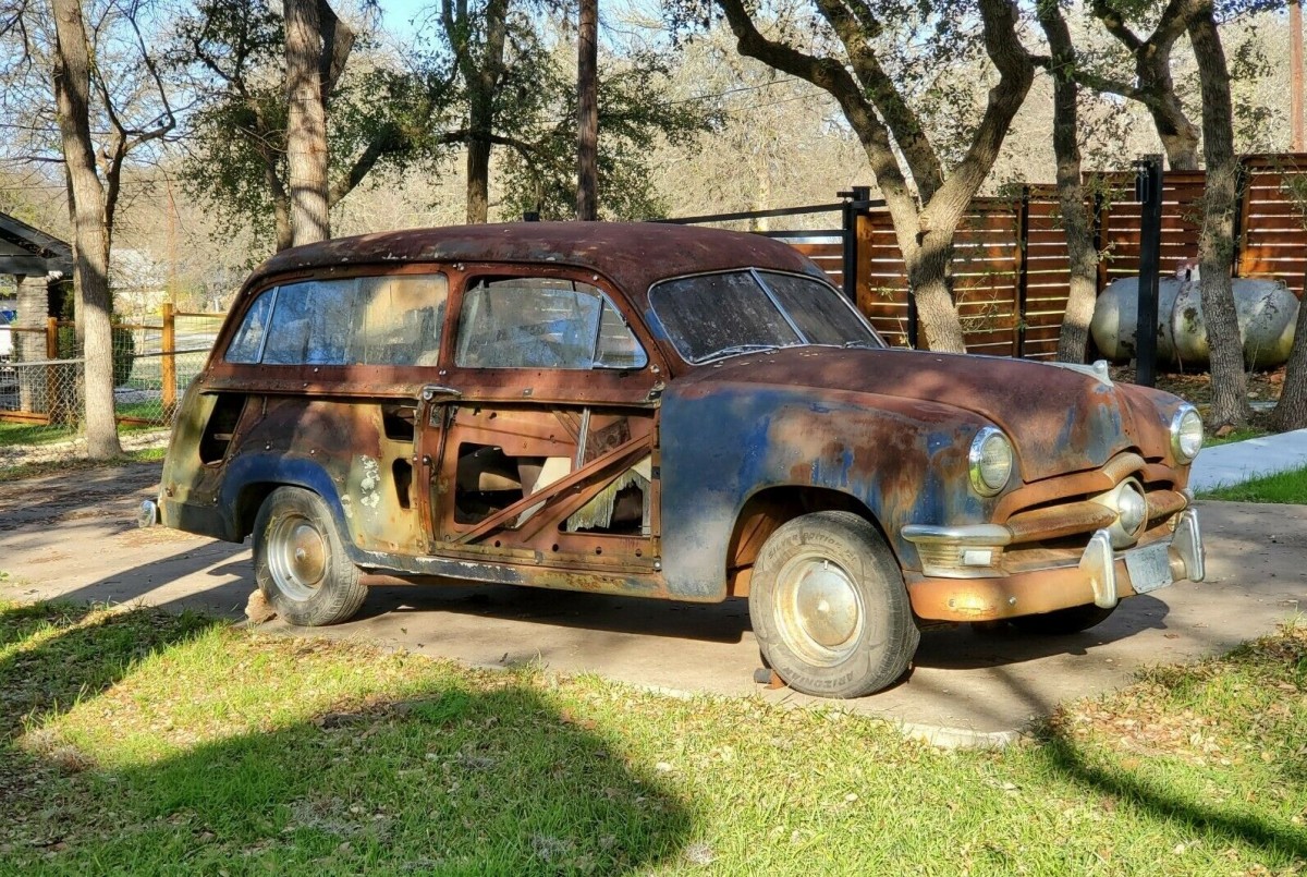 While a restored station wagon with wood body panels can be a thing of beauty, they weren’t terribly profitable for the car companies that offered them. They were expensive to build and required a lot of hand-assembly. Ford stuck it out longer than some, with their “Woodies” being all wood from the cowl back through 1948, and then real wood attached to steel doors, sides and tailgates until they stopped making them in 1951. This Ford Woodie from 1950 is described as a field find and has the looks of one as most of the wood is long gone, likely victim to Mother Nature (and perhaps a few termites). The Ford awaits its next owner in Manchaca, Texas and the bidding is up to $6.50 (that’s not a misprint) with an unmet reserve and a Buy It Now price of $8,950 here on eBay. Thanks, Larry D, for finding this one for us!