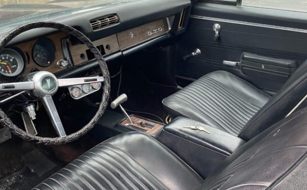 This Pontiac rolled off the line in 1968, the initial production year for the company’s Second Generation GTO range. The cosmetic changes were profound, with the GTO featuring more curvaceous lines than its predecessor. This car looks striking in Starlight Black with contrasting stripes. It presents nicely in its current form, with no evidence of significant cosmetic shortcomings. The seller confirms that it isn’t perfect, and should be considered more of a driver-grade vehicle than a show car. The limited underside shots are equally encouraging, revealing areas of light surface corrosion, but no penetrating rust. The glass and trim are in excellent condition, and the seller is willing to include an additional set of Rally II wheels with red center caps.