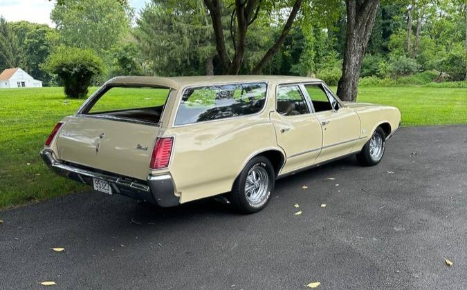 What a beautiful wagon! These were not very popular as the More expensive Vista Cruiser outsold them by a wide margin. Still, these were lighter, had a shorter wheel base by I believe 4 inches ( no 3rd row seat option) but still had the comfort and utility of the Vista Cruiser. Most parts from the GM “A” bodies of that time will fit such as rear sway bars, boxed control arms, springs, brakes, and such making them easy to upgrade for better stopping and handling. The 350 inch Olds is no slouch but an easy bolt in with out going to the heavier 455 would be a 403 Olds from the late 70’s trans am using a cam, heads, intake from a late 70’s high compression 350 and add a 200-4R overdrive for effortless cruising. Needs a vintage AC unit to keep the lady happy! All in all, a really great ride.