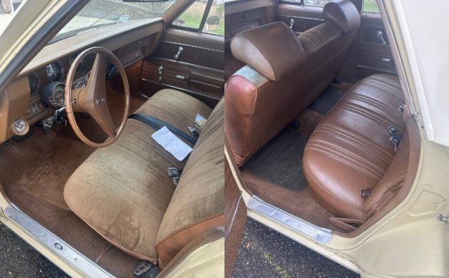 I’m not sure if these wagons were “intermediates”, the Vista Cruisers (and standard wagons without the added windows) were pretty good sized vehicles. I believe they were the largest wagons Olds offered. Anyway, it’s too bad about the front seat. If JC Whitney offered upholstery, that’s what you’d get. It’s a pretty good looking car otherwise but look at it closely for rust, as the tin worm was not kind to these. A word about the Vista Cruiser’s top windows. They can hide a lot of corrosion and often developed leaks. This car of course, won’t have that problem.