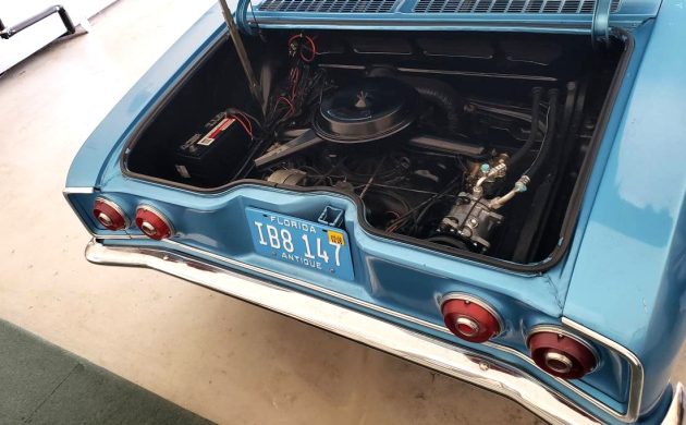 The seller says this car is a “true survivor,” which in part would imply that the blue paint is from the factory. But there are some bubbles in the paint that should be corrected before they turn into rust holes. The interior looks good, but it looks as though the bucket seat bottoms have been recovered, as the material doesn’t quite match the seat backs. With add-on “mag” wheels, this car should do well at Cars & Coffee!