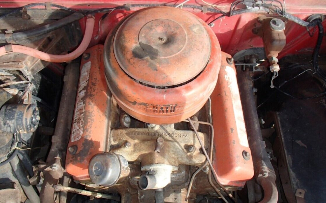 When running, power would be provided by a first-year, 130 HP, 239 CI “Y-Block” V8 engine working through a Fordomatic, automatic transmission. It’s a non-runner, missing both its radiator and driveshaft and the seller tells us that it’s stuck. The mileage recording is 84K miles but it’s not authenticated.