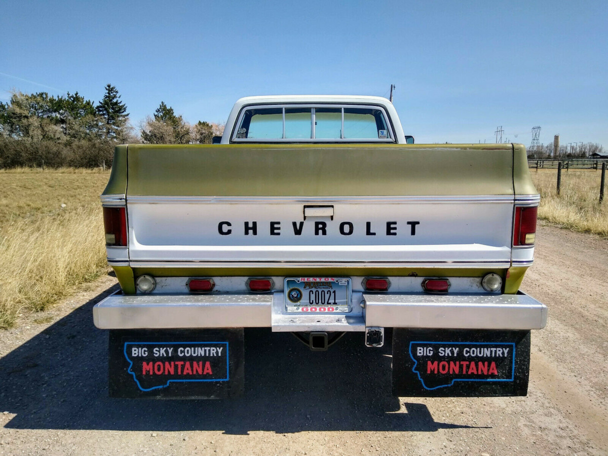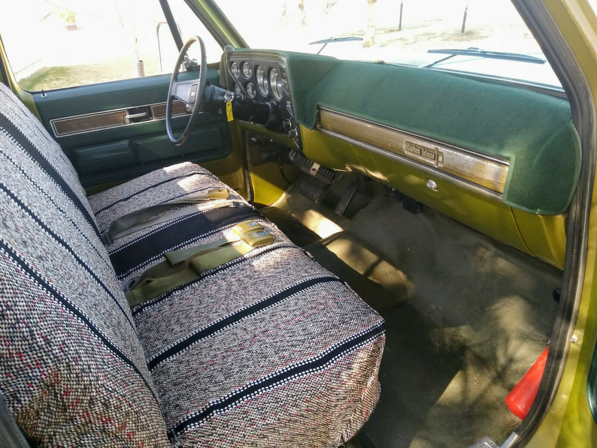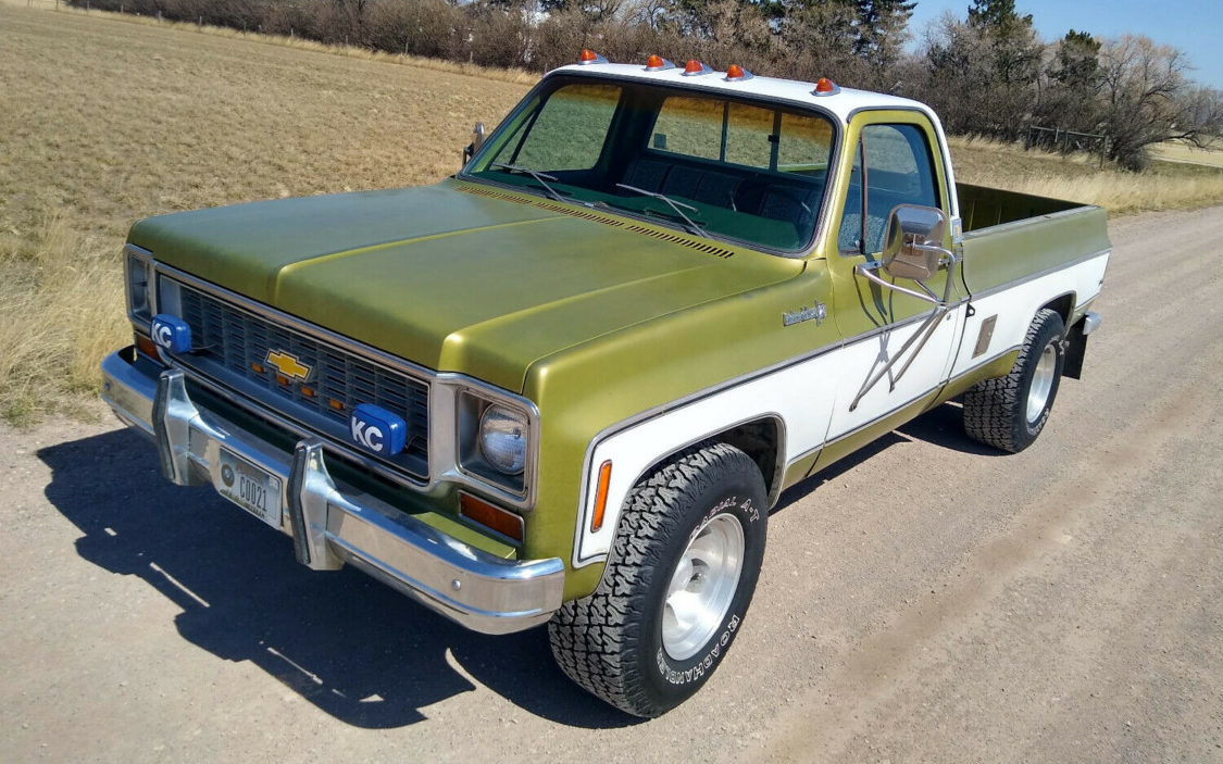 The Chevy is located in Montana, which is a good thing considering the mudflaps proudly announce the state’s nickname. The body sports original Lime paint that the seller claims still cleans up well but has various touch-ups in places; he hasn’t attempted to buff it out, which is too bad considering it’d likely really pop with a good buffing. The inside of the bed is said to be in great shape owing to having a camper shell strapped on it for years, but the paint on top of the box rails has peeled away due to camper tape. The body sports some additional reflectors and lighting out back; no word if it works. The seller does disclose that the killer KC driving lights up front don’t currently work – hopefully, it’s just a wiring issue.