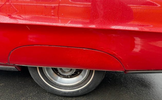 The seller is forthcoming, however, about a few flaws whose seriousness depend on how you plan to enjoy the car. The rear quarter panels have some noticeable bubbling around the wheel wells/fender skirts, which leaves a new owner with a few options: repair the rust and try to blend the paint, restore the whole car and give it a paint job, or leave it alone. Like the seller says, it “[depends] on your goals.”