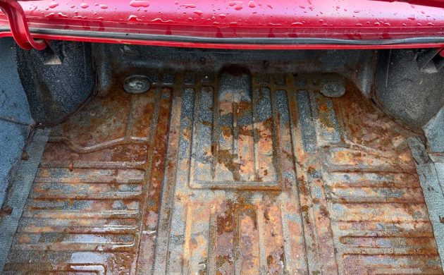 There’s also a little rust in the trunk, but the serious stuff appears to be confined to the upper corners, which are certainly easily patched and will be covered by the trunk mat anyway.