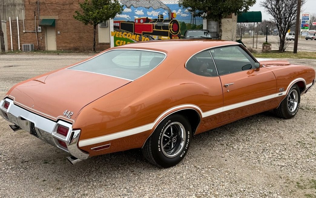 I prefer this style of 442 /Cutlass S over the Cutlass Supreme body style from ’70 to ’72. I like the arched lines on the quarter panels. And the roof line. This one looks great.