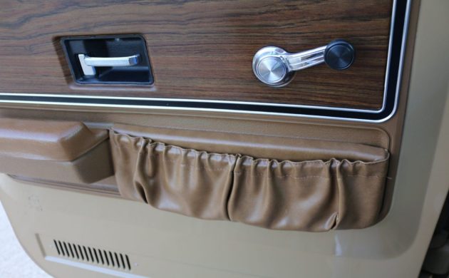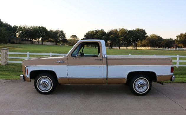 This is another excellent example of the two tone treatments the ’73 -’80 had. Love that front fender line. This one is a head scratcher, I’d expect the 3 speed to be hooked to a 250 straight 6 or a 305 or 307. But a 350? I almost wonder if whoever ordered it goofed, and was thinking 3 speed with the SM 465 4 speed due to the creeper gear 1st most people didn’t use. Or, maybe they just wanted it that way. Either way this one is absolutely beautiful. My Dads ’73 had rust through in spots in the bed and the rear quarters in the wheel arches by ’77 when he traded it in. To see this one like this is a huge treat.