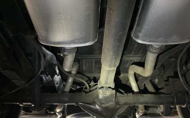 In the ’79 model year, if your truck was built before 01/01/79 you could get dual exhausts. However, if it was after 01/01/79, you got that catalytic converter which was about as welcome as a tax auditor at a mafia convention. I ordered my K-1500 in good time to avoid the new regs but, wanting part-time 4×4, there was a shortage of the adapters between the TH350 transmissions and the 205 transfer cases. I finally relented and allowed them to build my truck with the 203 but by then it was into the new year and I got everything the tree huggers could throw at me, except the air pump. That was OK; I completed my PDI then drove the truck directly to the muffler shop and had a set of dual exhausts built. They were actually a little better because I used 2 1/4″ pipes instead of 1 7/8.”