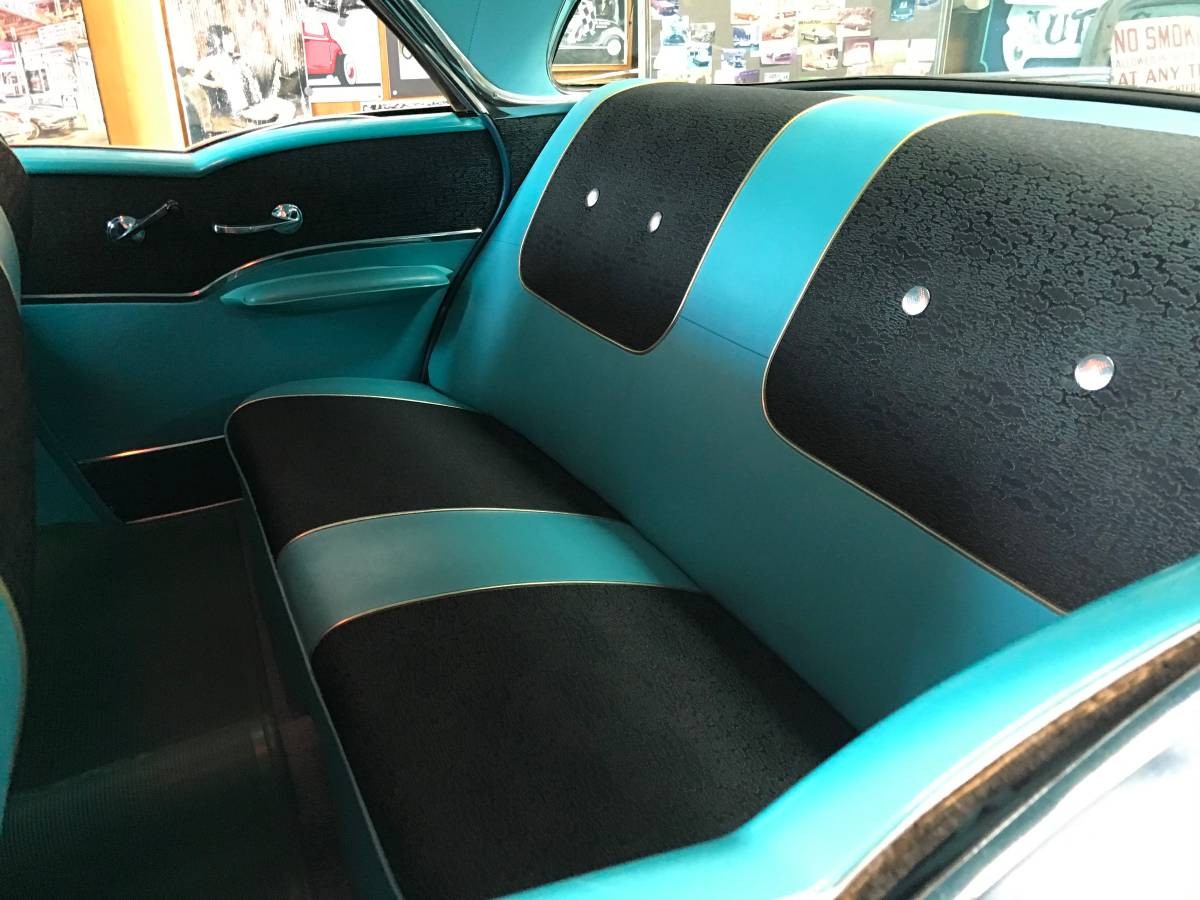 For a minute I thought I was looking at my car! This is my favorite tri-five, and in a color that probably wouldn’t look as good on any other model. About 10% of the 57’s were 4 door hardtops, but they were also just drivers so many were just worn out and scrapped. Only recently have they became a popular collectable, perhaps because they are a great looking 4 door and are so practical for families. Surprisingly, a fair amount of turquoise 4 door hardtops are listed for sale online at any time. There are 4 or 5 right now. These turquoise 4 doors are just beautiful to look at. The chrome is understated, the interiors are beautiful. Perhaps a lot of owners were struck by this and cared for them more than any other color. But are they rare? Definitely. Tens of thousands were made, but most are long gone.