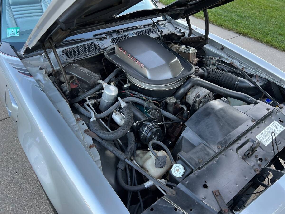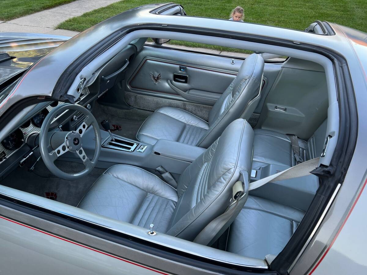 So what do you get for your cash? A very smart color combination of silver and charcoal, the familiar bird emblazoned on the scoop-equipped hood, but wait—this one is not called a “screaming chicken,” but rather a “super bird” because the tips of its wings extend onto the tops of the front fenders. The Anniversary models also have a new cast-aluminum turbo wheel in 15×8” size and, on the inside, red accent lighting. The top engine in the 10th Anniversary models was a 400-CID mill, but this car can’t have that—those came only with Borg-Warner four-speed sticks. This one, thus, has the 6.6-liter Oldsmobile 403 with a Turbo Hydra-Matic tranny. This engine, while reliable enough, is not known for taking well to being hopped up, but by this point, when you have a certifiable classic that has lived for more than forty years with under 1,000 miles of use per year, if you want something scary fast, you need to leave this one for someone else and go find a less-rare car to thrash.