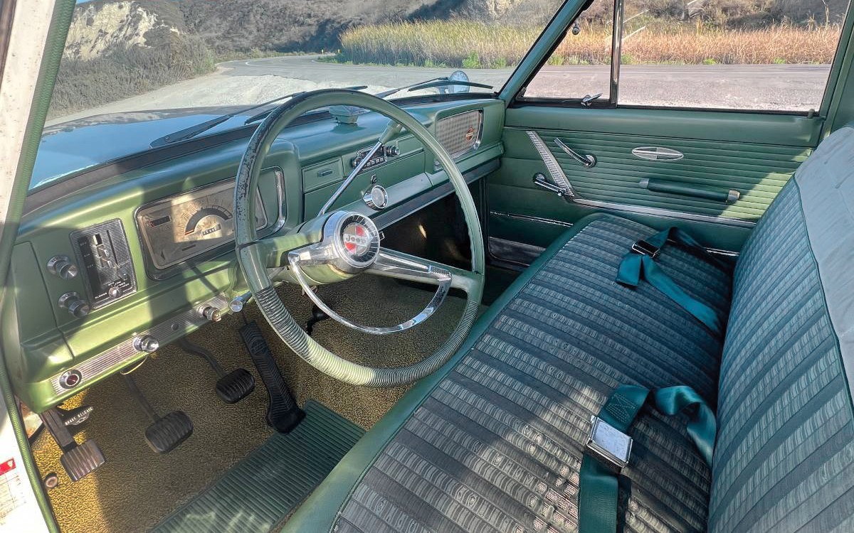 This Wagoneer looks beautiful overall, but you can see some wrinkling down the passenger side. I’m assuming those are decades worth of door dings as the seller says the paint is original. They’re only the third owner and that’s pretty incredible after six decades. The seller has provided a five-minute video here showing this Wagoneer in some detail, nice job! It’s fun to see them flying through Newport Beach at the 37-second point in the video. What a paradise, and to be driving this Wagoneer there has to be a treat.